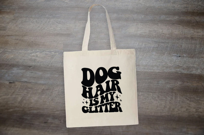 Embrace the sparkle and charm of dog ownership with this delightful tote bag that celebrates the glittering joy of canine companionship. This statement piece boldly declares that dog hair is not just a mere nuisance; it's a magical kind of glitter that adorns every dog owner with love and laughter.