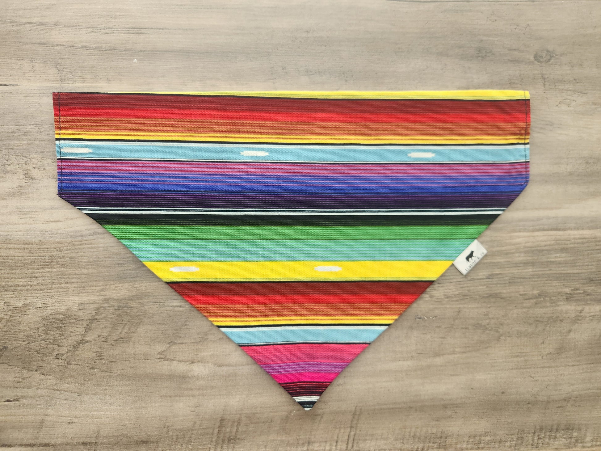 Crafted with love and inspired by traditional Mexican serapes, this bandana features a stunning combination of bold and vibrant stripes. The lively and energetic colors will make your furry friend stand out from the pack and add a festive vibe to any occasion.