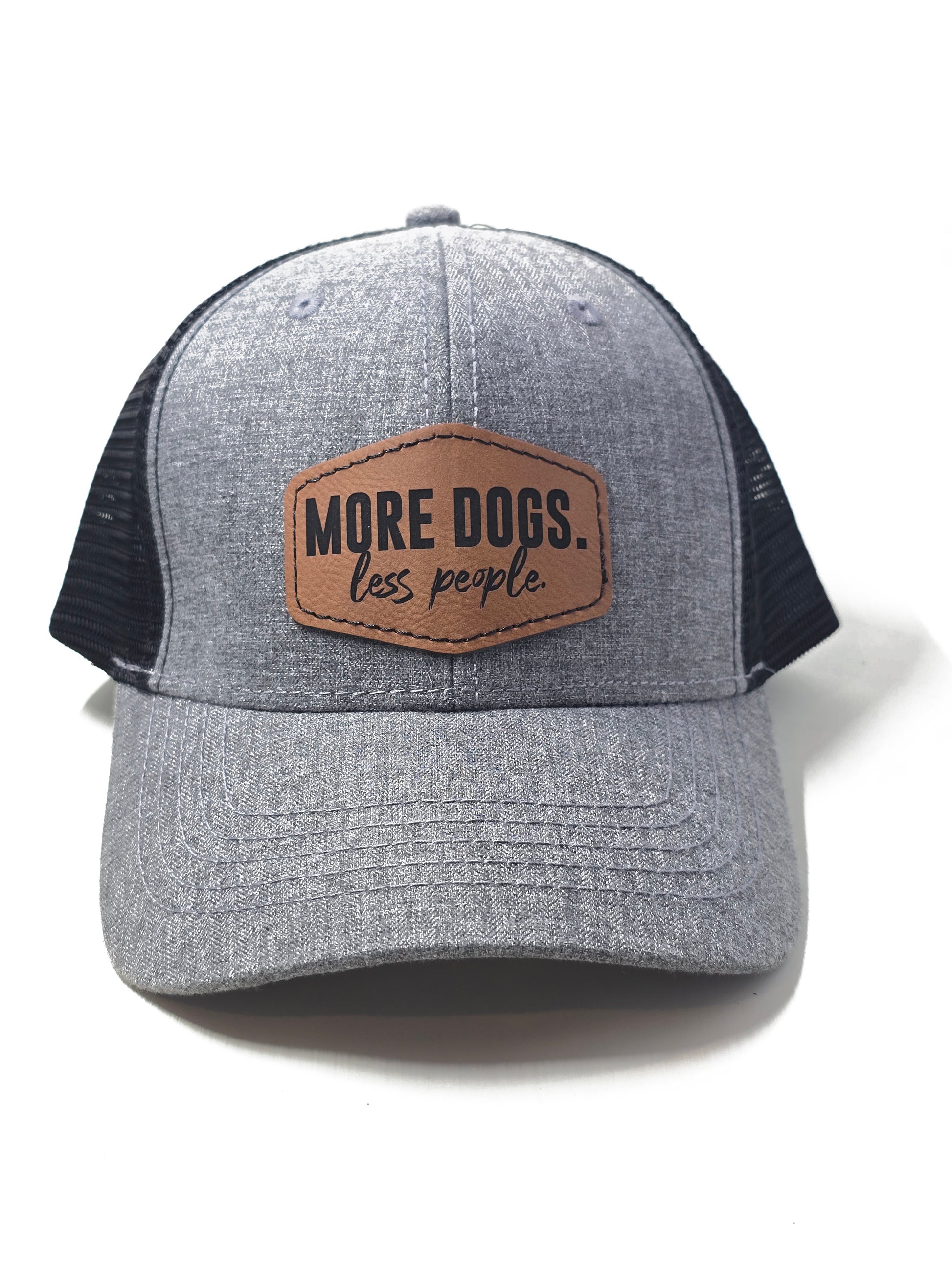 Let the world know where your loyalty lies — with the dogs! This Funny Dog Mom Trucker Hat features the bold, engraved patch “More Dogs. Less People.” on a charcoal and black mesh snapback. Complete with a hidden ponytail slot, it's the ultimate low-maintenance statement piece for pet moms who keep it real.
