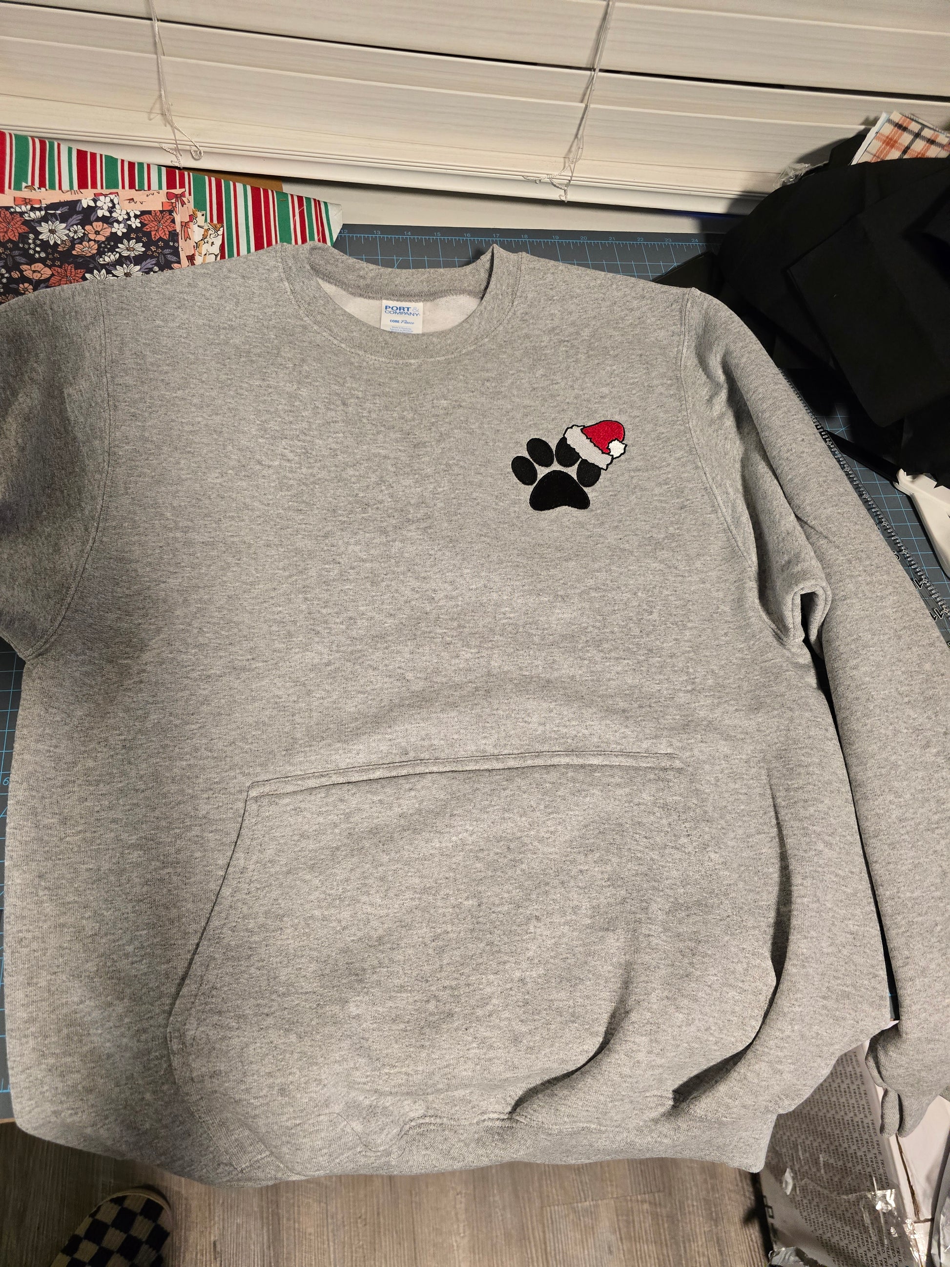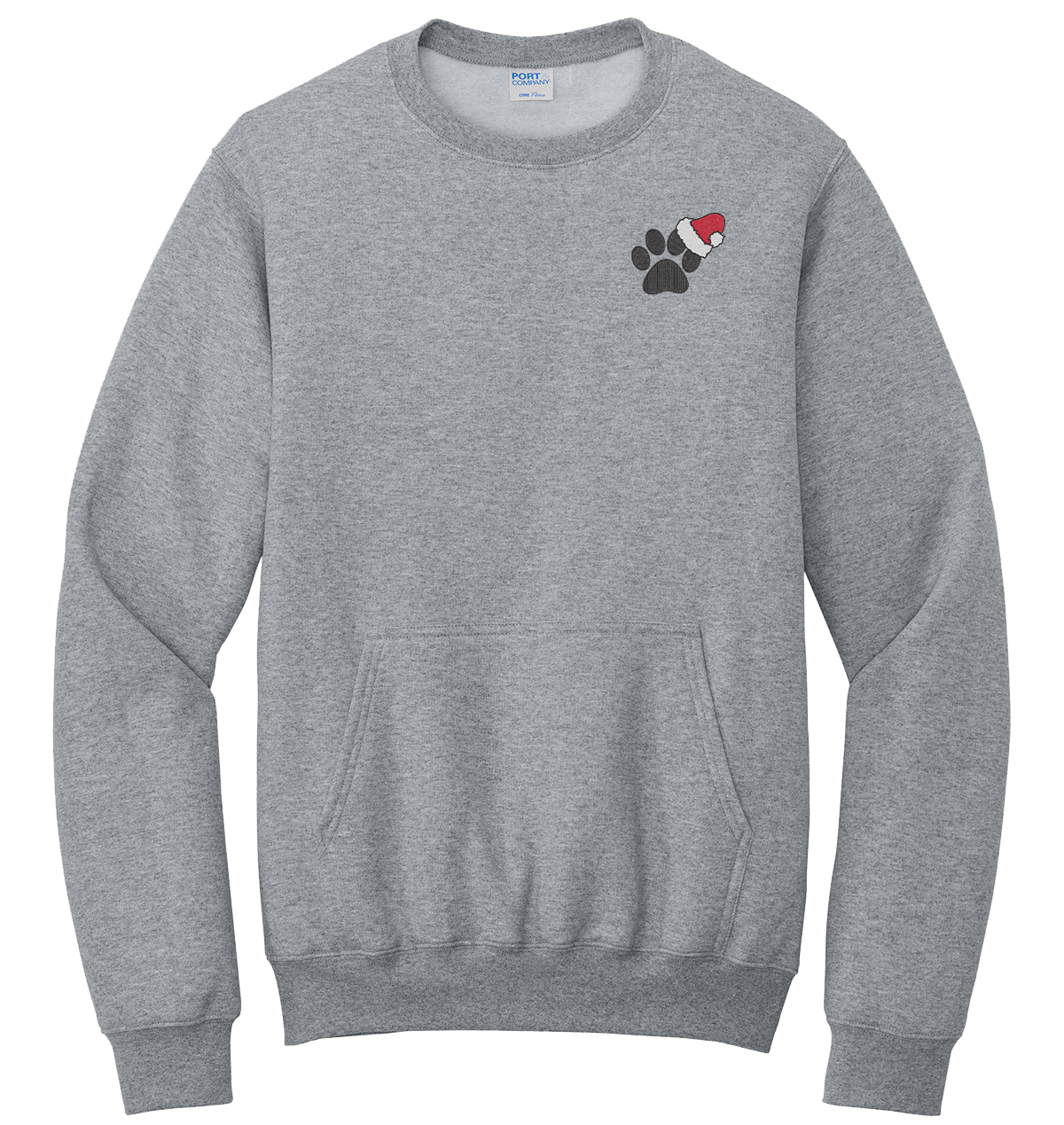 Get into the holiday spirit with cozy flair! This Sport Gray crewneck sweatshirt combines festive cheer with subtle style, featuring a charming dog paw adorned with a Santa hat on the left chest pocket area. Perfect for chilly days and winter adventures, it’s as soft as it is stylish, with a relaxed fit that’s ideal for layering. Whether you're decking the halls, walking the dog, or sipping cocoa by the fire, this sweatshirt is a merry must-have for every dog lover this season!