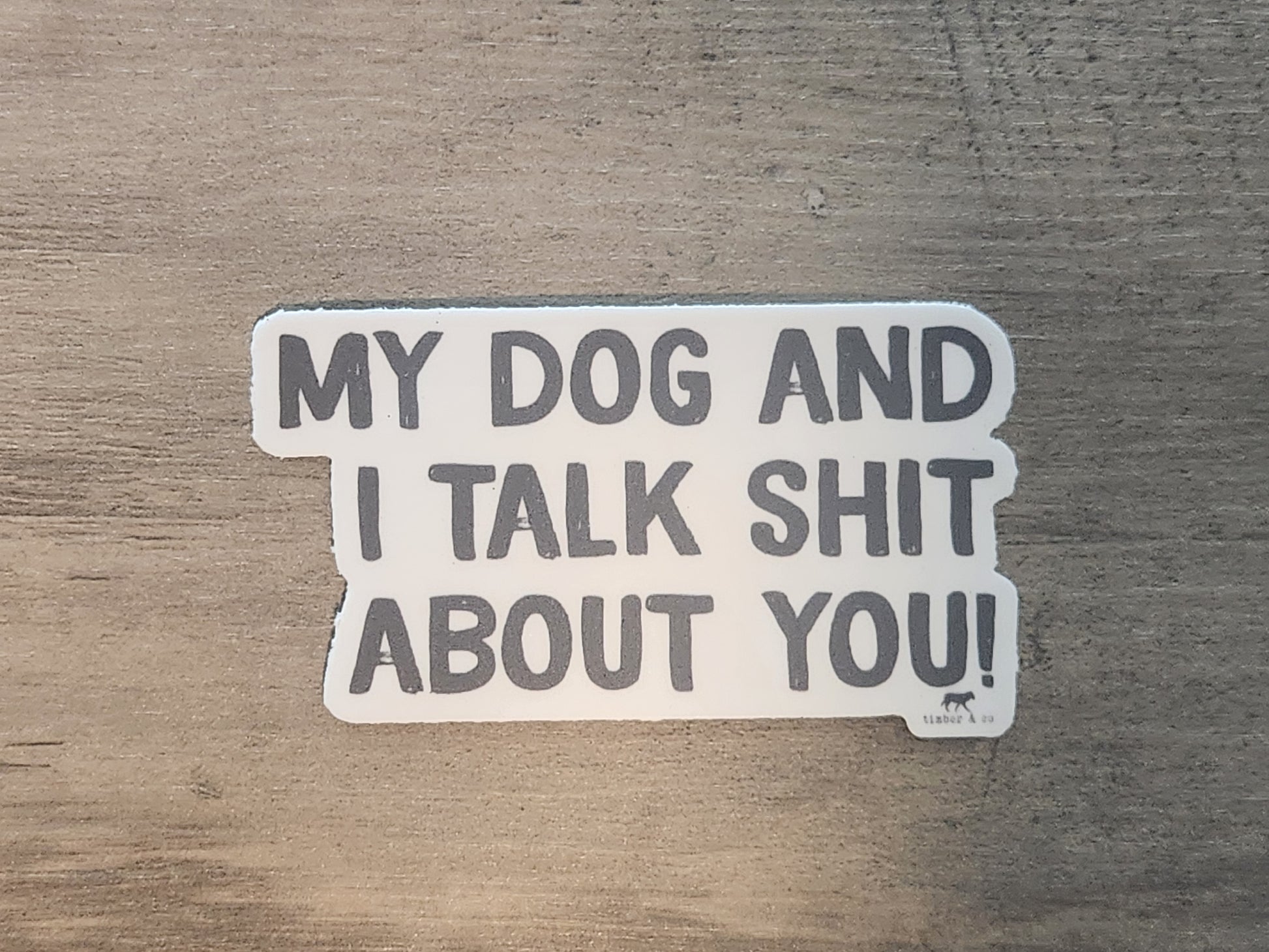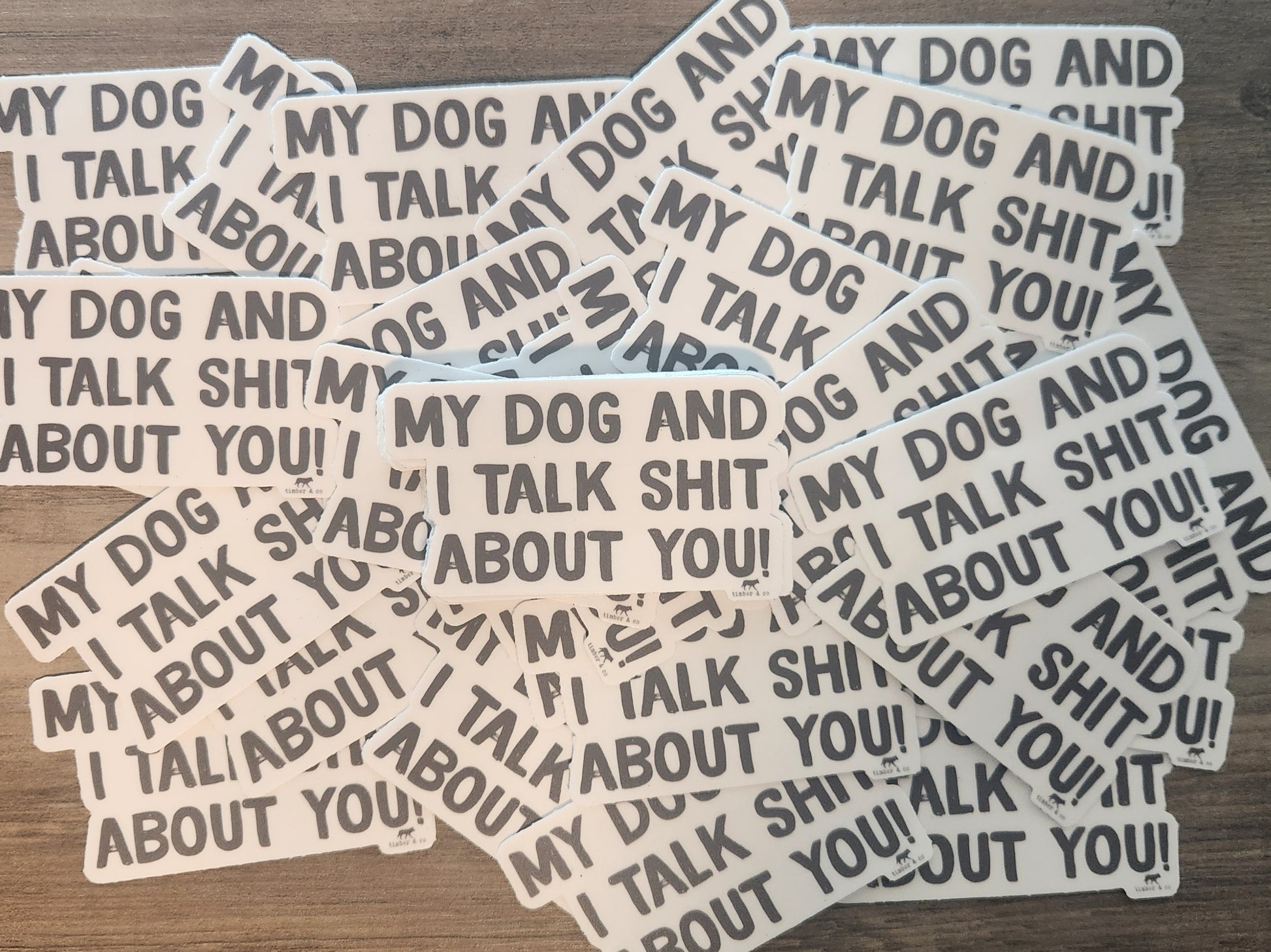 Express your love for your furry friends with our 'My Dog and I Talk Shit About You' sticker! Perfect for dog enthusiasts who embrace the joy and humor of being a devoted dog parent. Stick it proudly and share your passion for the paws in your life!