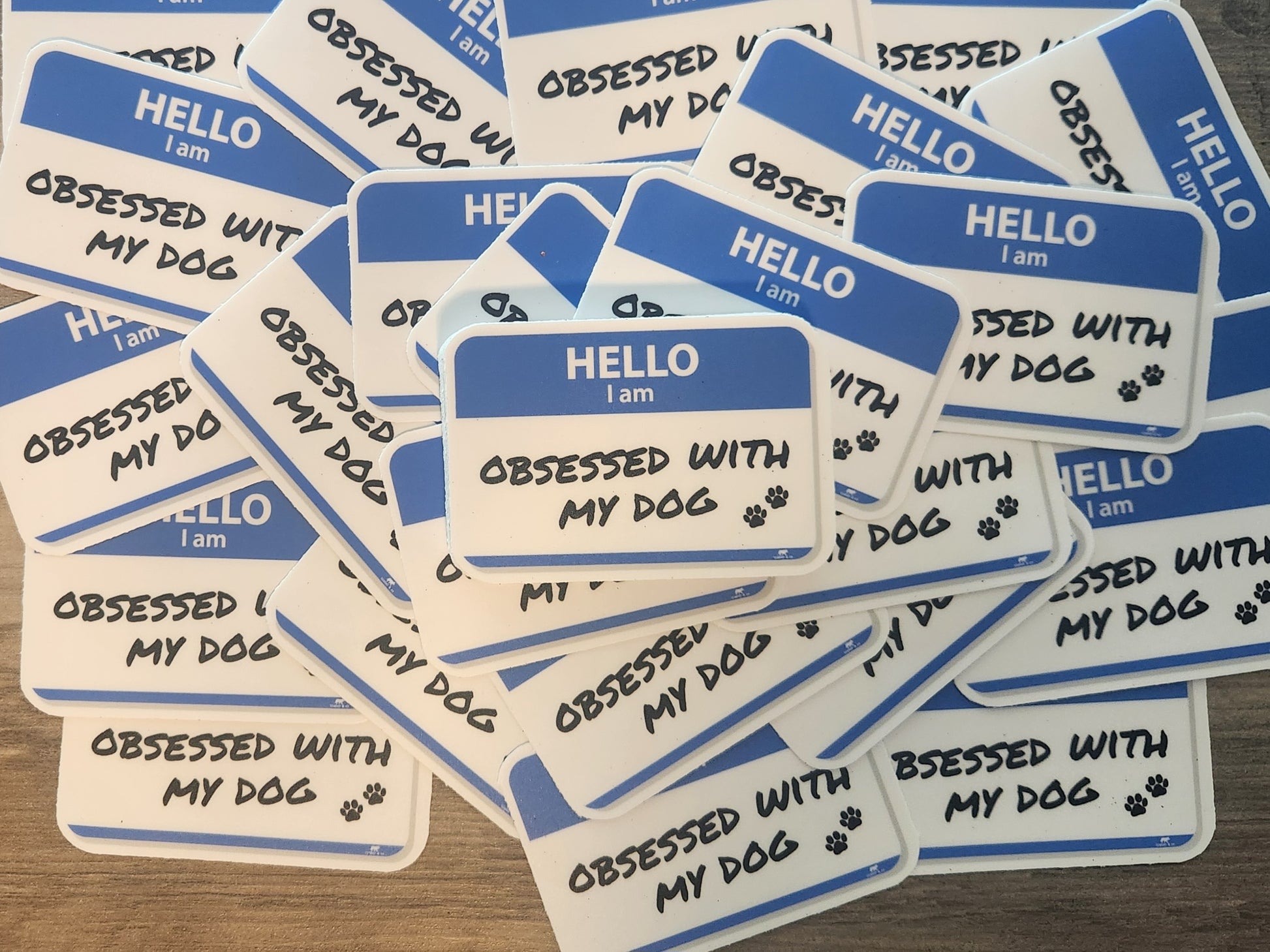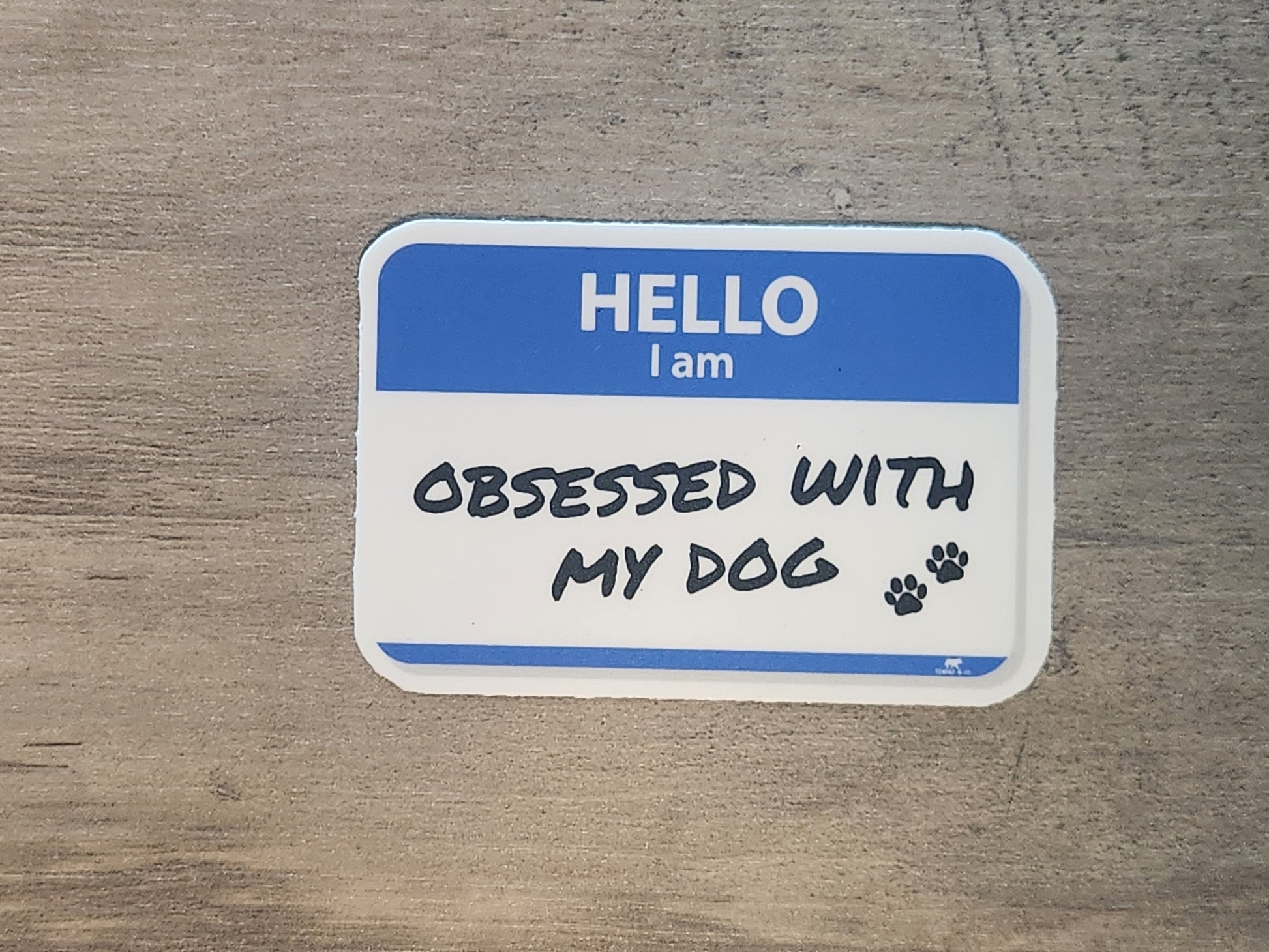 Express your love for your furry friends with our 'Hello I'm Obsessed with my Dog' sticker! Perfect for dog enthusiasts who embrace the joy and humor of being a devoted dog parent. Stick it proudly and share your passion for the paws in your life!